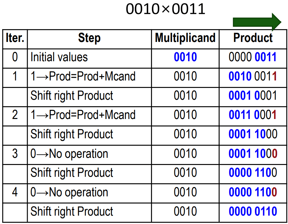 - Multiplier의 LSB가 1이면 Multiplicand를 Product에 더한다.