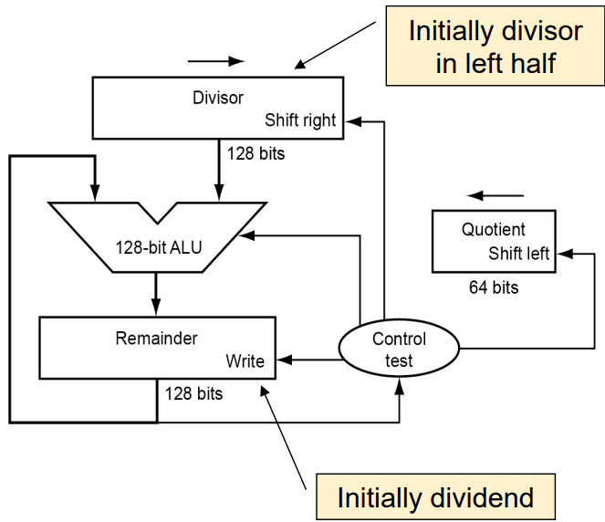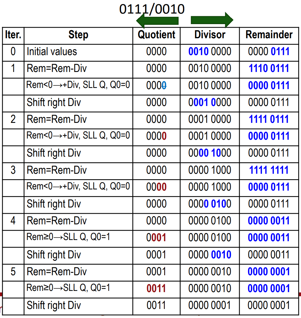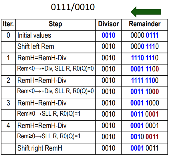 - 그래서 처음에 Remainder를 왼쪽으로 시프트해서 비트를 하나 가져온다. 처음에는 0이니까.