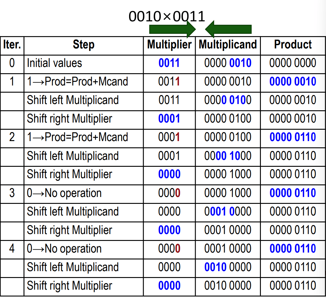 - Multiplicand를 왼쪽 시프트, Multiplier를 오른쪽 시프트한다